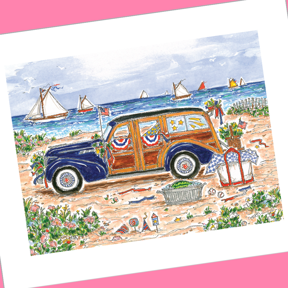 The JULY image as shown from the 2026 Calendar Collection on a 4"x5" invitation size postcard which come with the standard A2 invitation size white envelopes. These invitation size postcards can be used with envelopes, as a postcard, a gift card or simply display anywhere to raise a smile.